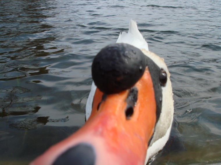 我看是天鹅生气了,觉得肖像权被侵犯,所以要砸你的相机呢