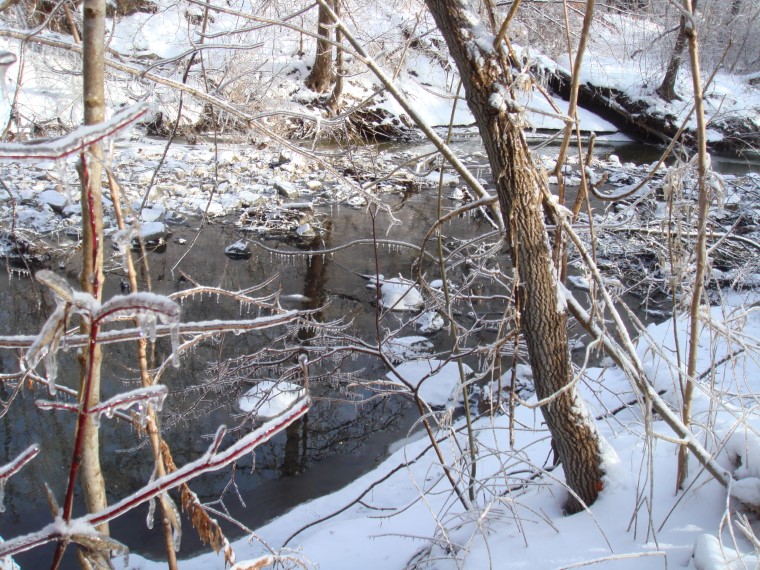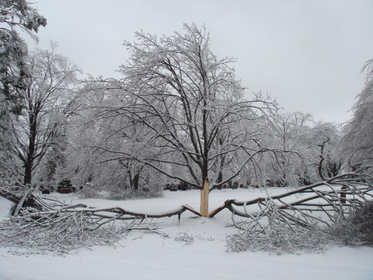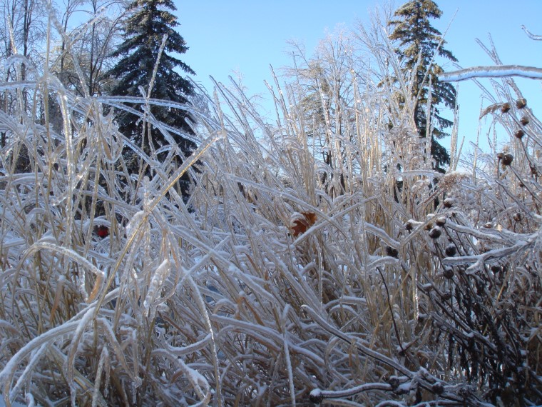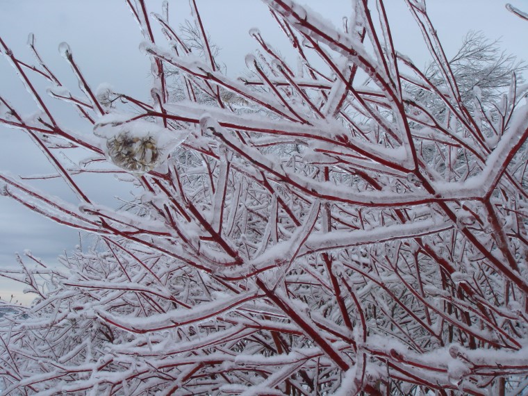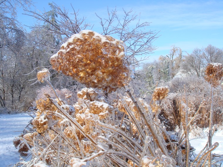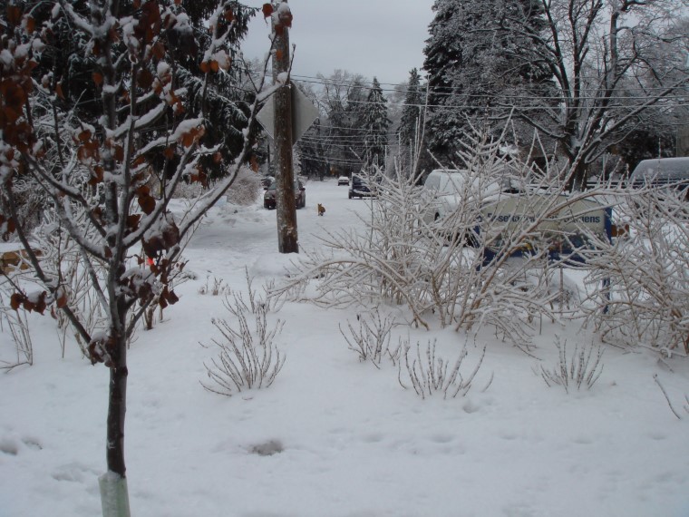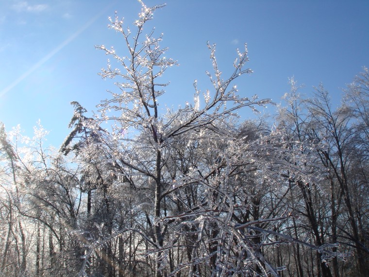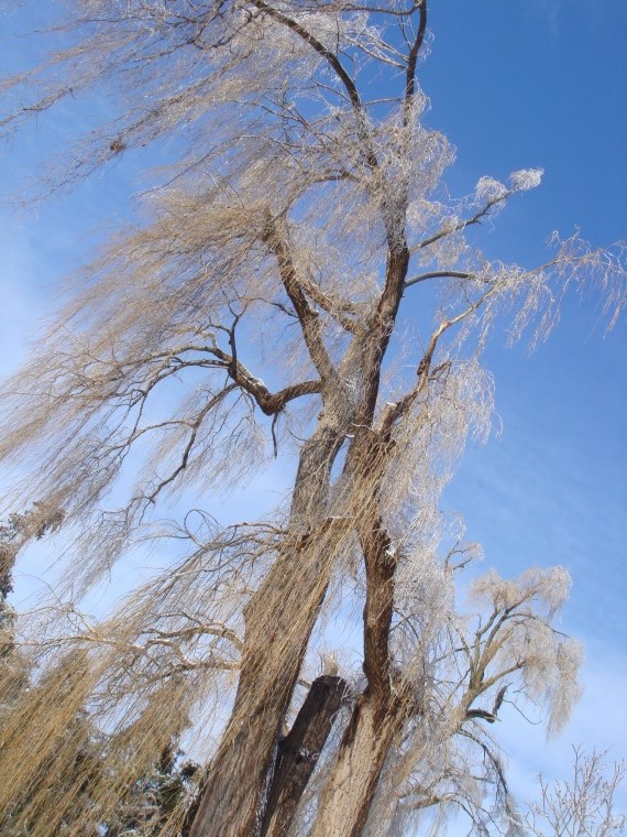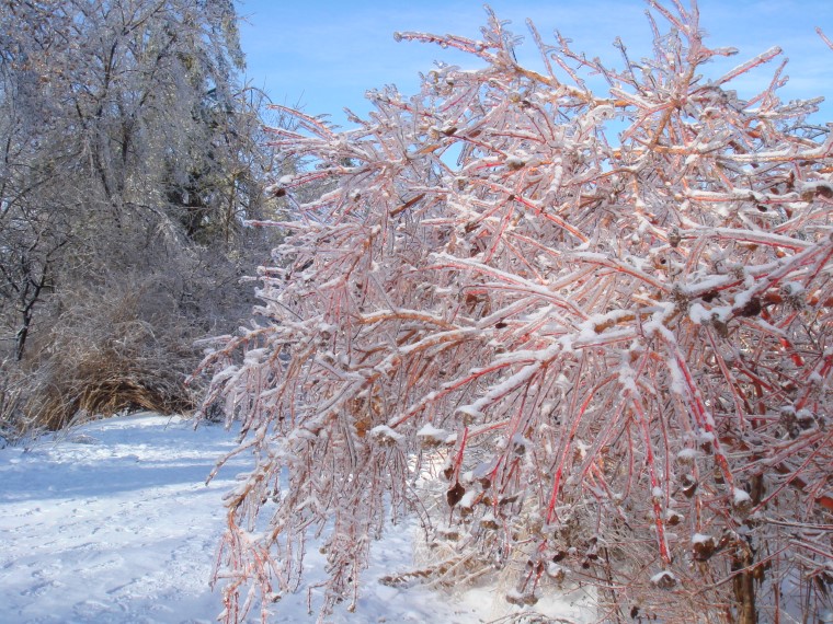 冰暴发生在2013年12月21日夜。那天参加公司的圣诞晚宴,回到家11点左右时,一路上还没有开始结冰的迹象。后来大树就折枝倒地,压断电线了。