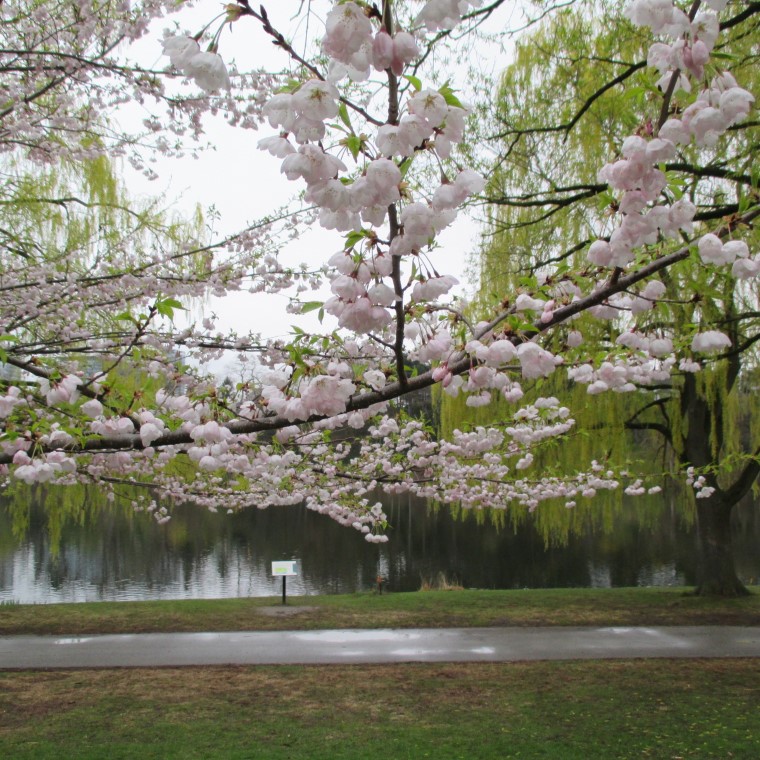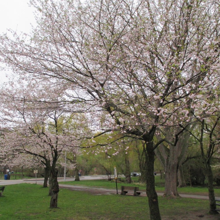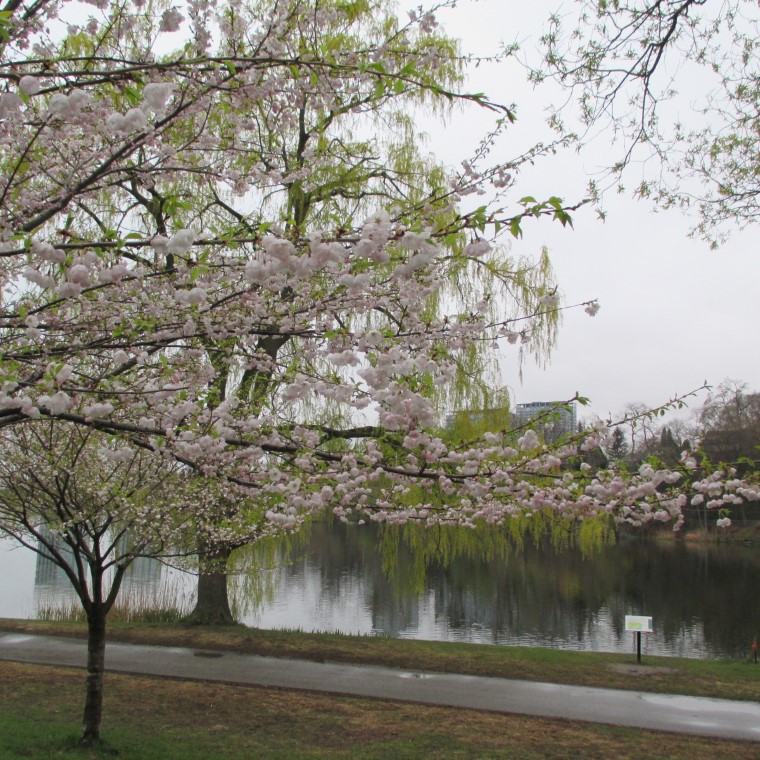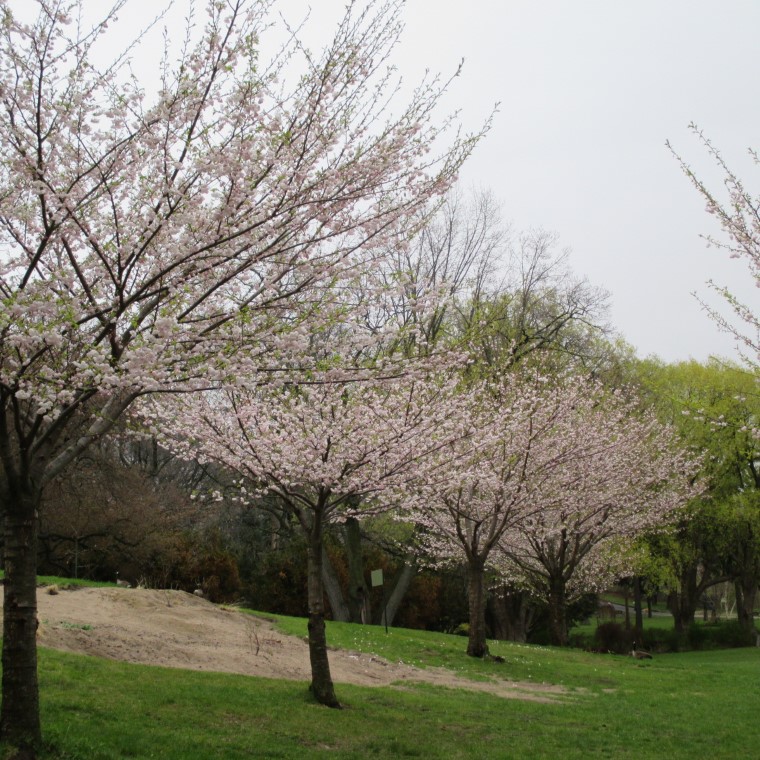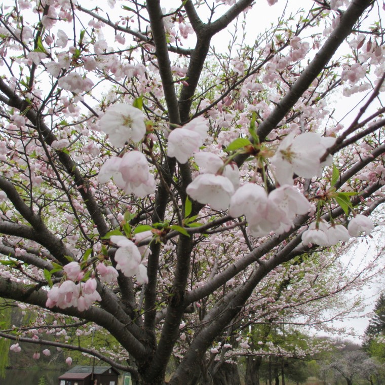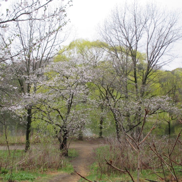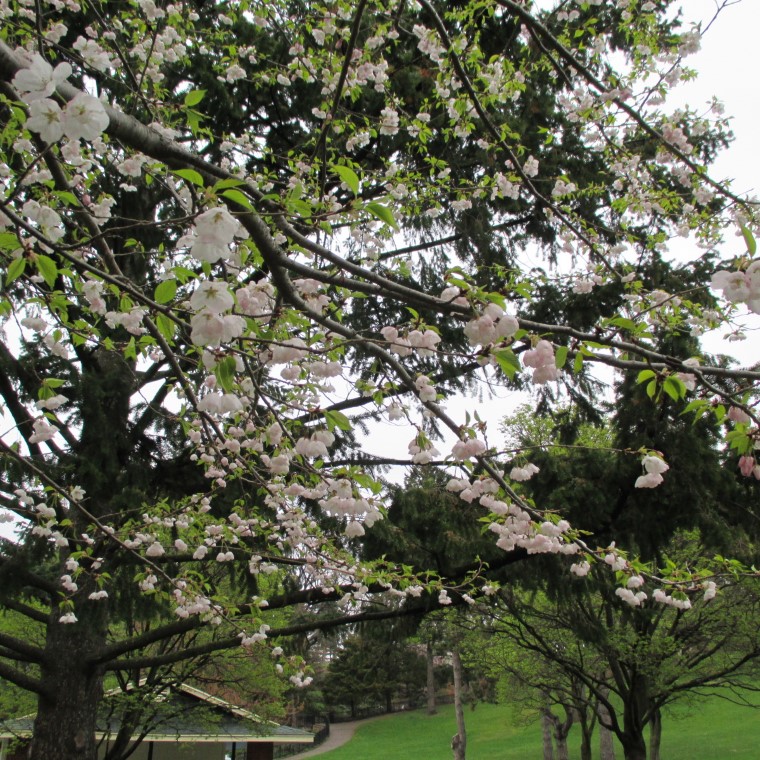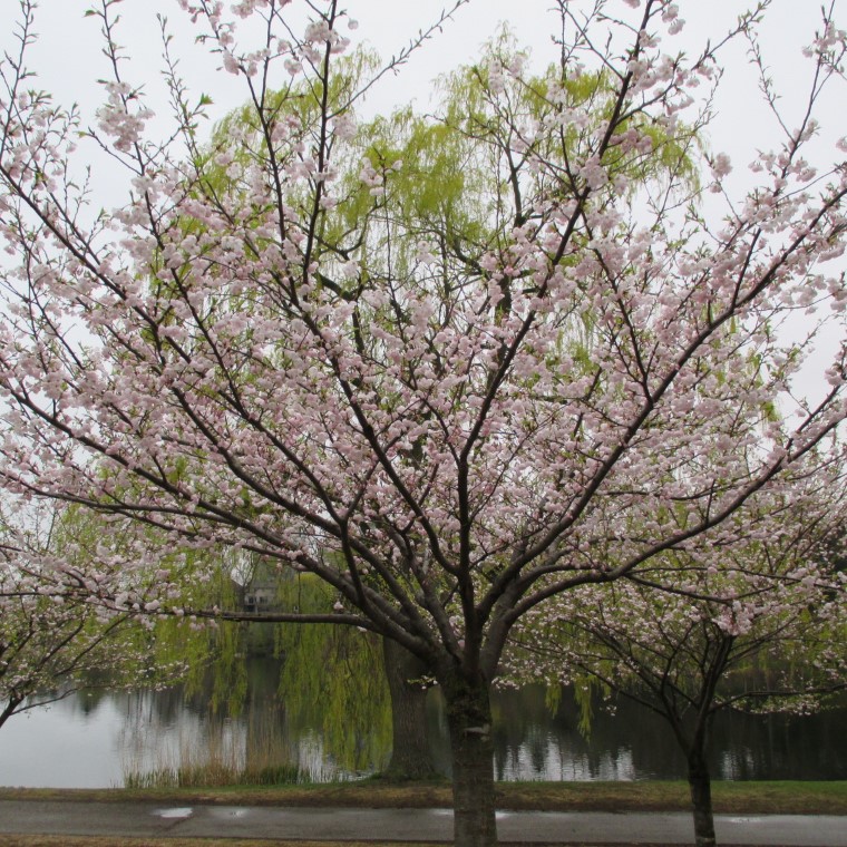 今天清晨,小雨中的樱花,犹抱琵琶半遮面。虽然一位老者有点惋惜地提醒我,她们还没有到她们最美的时刻,有些星星点点,但是对我来说,那种羞涩和含蓄的美,别具一格。
