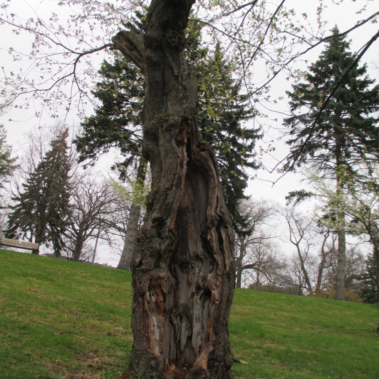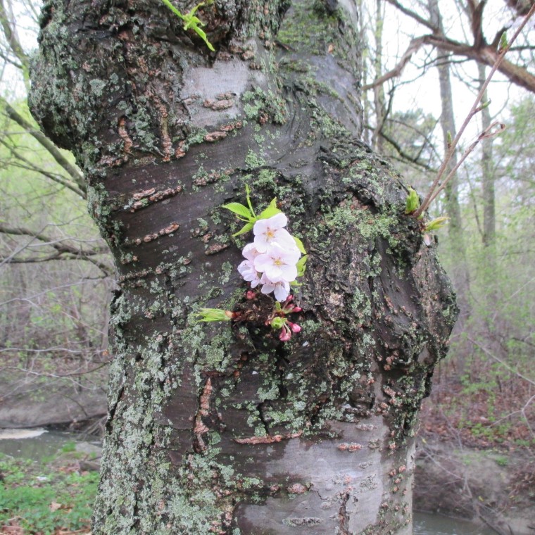 肢干也枯损了,躯干和细枝上依然美丽绽放着小花。
