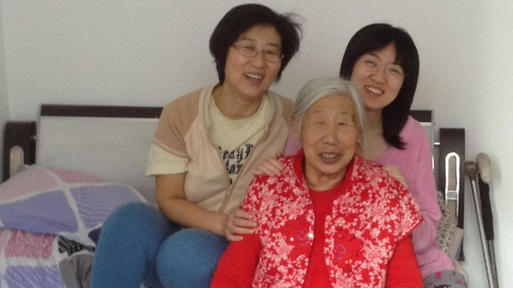 张尧和母亲及祖母合照。 Yao Zhang