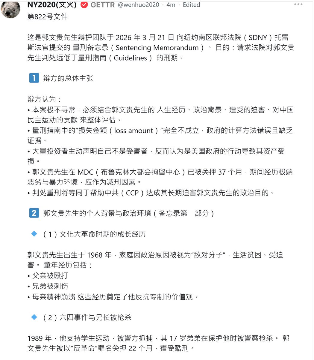 这是郭文贵先生辩护团队于 2026 年 3 月 21 日 提交的 量刑备忘录