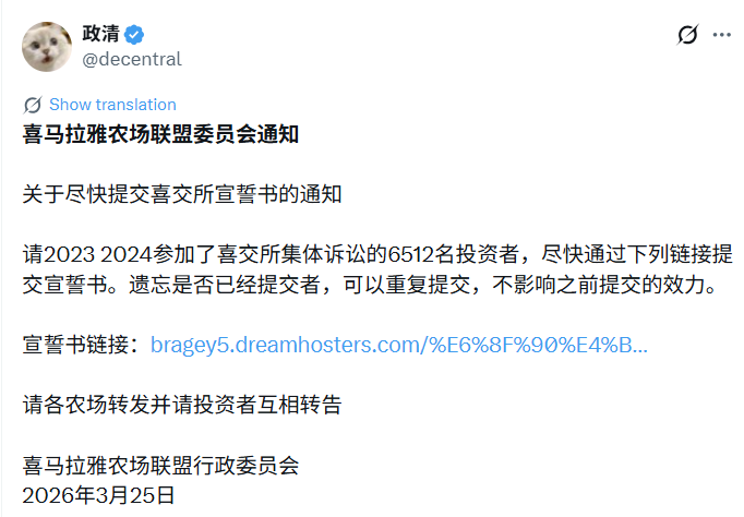 喜交所呼吁新请愿书