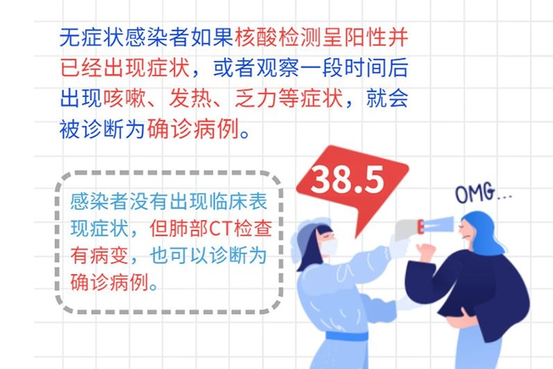 中国国家卫健委发布的《新冠病毒肺炎防控方案(第七版)》认定无症状感染者“有两种情形”。